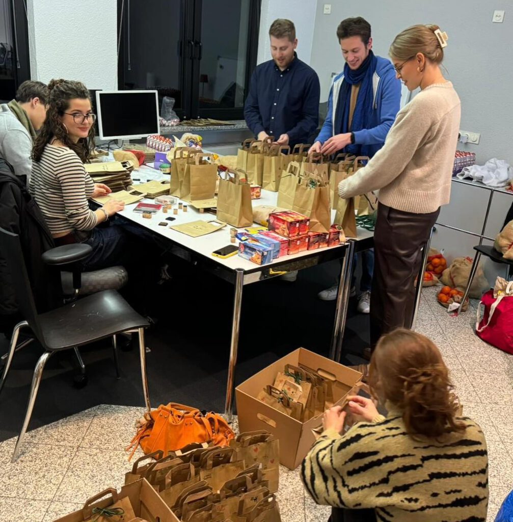 Die Tütchen beinhalteten: Schokoweihnachtsmänner, Mandarinen, verschiedene Tee und weitere Leckereien.